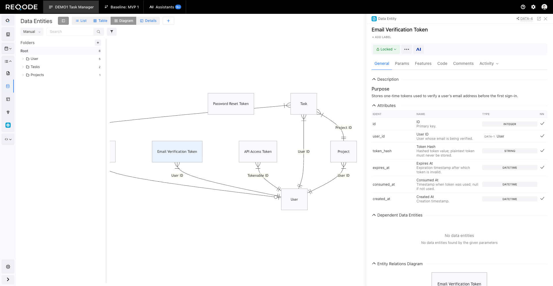 The Entity Relationship Diagram (ERD) in the Data Entities Repository provides a structured view of the product data model. The repository serves as a directory of data entities, enumerations, and classifiers used in requirements.