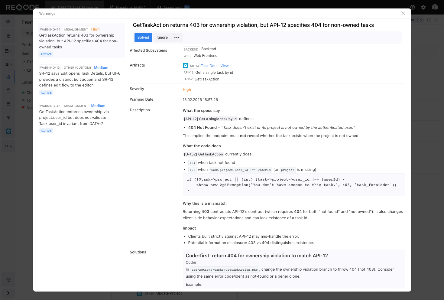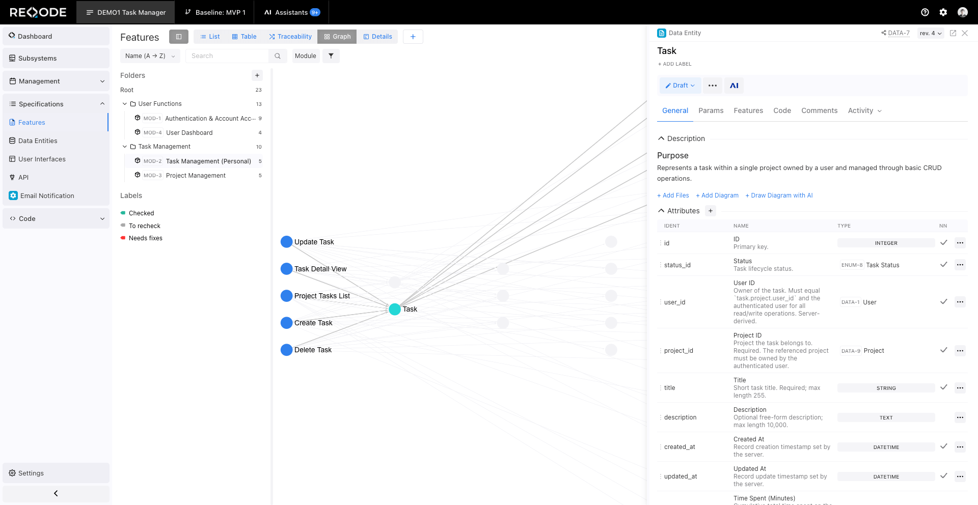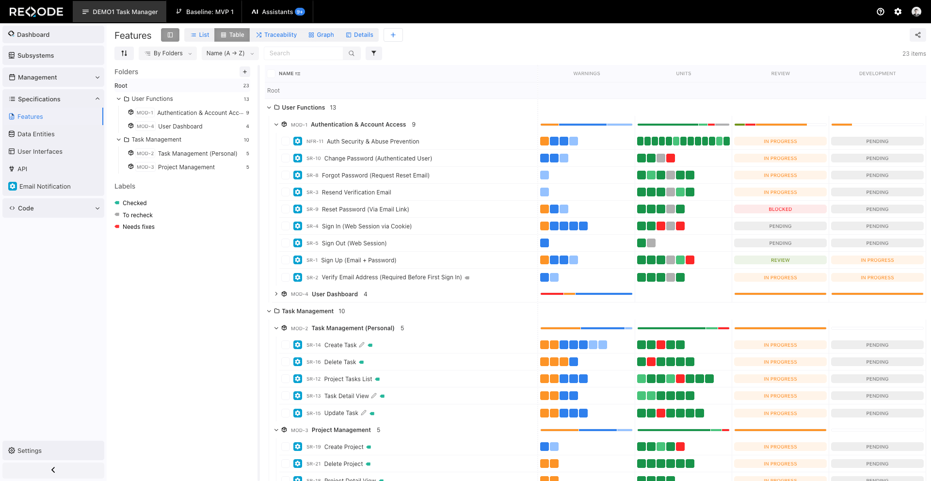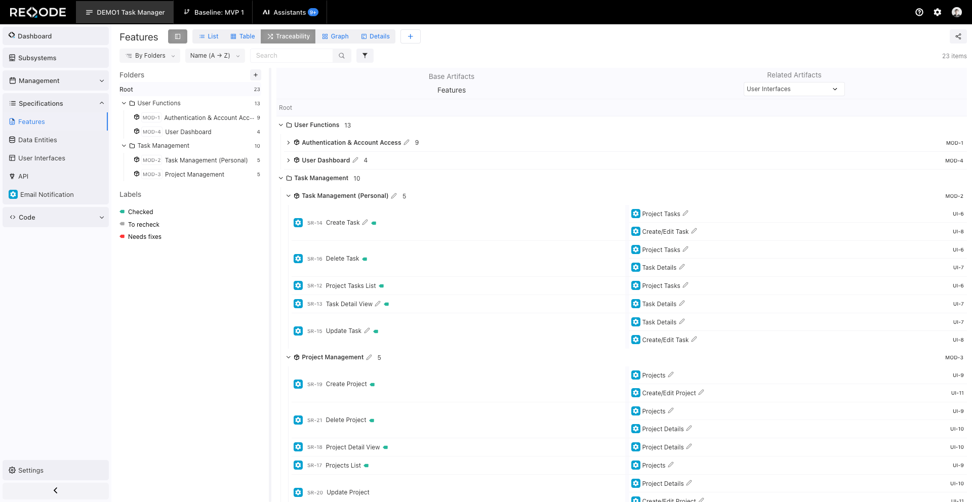 The Feature Repository is the core of Reqode. Each feature describes a specific part of the product behavior or requirement.